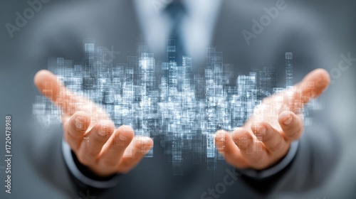 Ceo presenting strategic roadmap with holographic display in business meeting corporate environment leadership vision