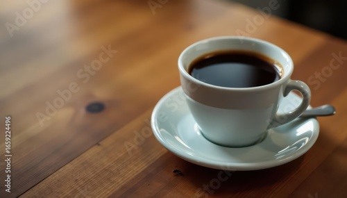 Ceramic coffee cup, rich brown coffee, polished wood surface, office, mocha