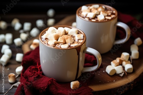 ceramic mugs filled with hot chocolate topped with marshmallows