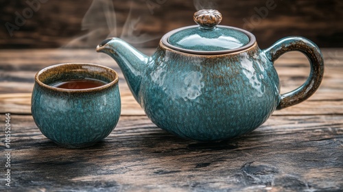 Ceramic Tea Pot and Cup on Wooden Table for Cozy Lifestyle Warm Beverage Experience Home Decor Kitchen Essentials and Tranquil Tea Ritual