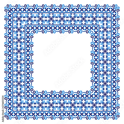 Ceramic tile border pattern. Islamic, indian, arabic motifs. Damask border seamless pattern. Porcelain ethnic bohemian background.