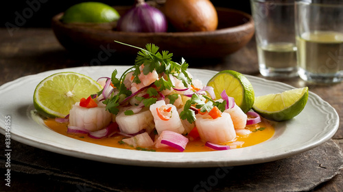Ceviche refreshing and tangy dish made with raw fish cured in citrus juices, often served with onions and cilantro