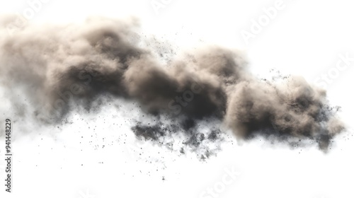 CG Floating Cloud of Dust Particles: A diffuse cloud of tiny CG dust particles, softly lit and suspended in mid-air on a white background.
