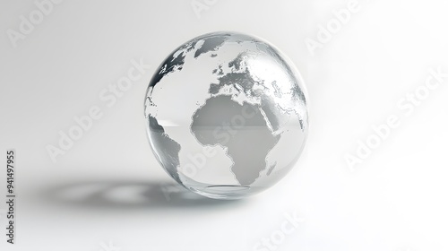 CG Transparent Globe: A CG-rendered transparent globe, with continents subtly etched on its surface, floating on a white background.