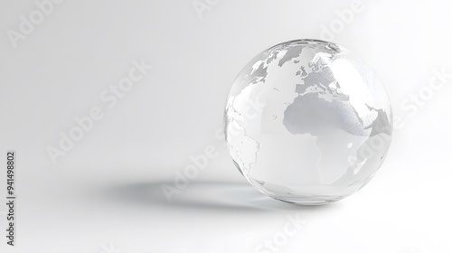 CG Transparent Globe: A CG-rendered transparent globe, with continents subtly etched on its surface, floating on a white background.