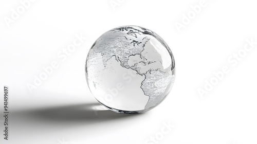 CG Transparent Globe: A CG-rendered transparent globe, with continents subtly etched on its surface, floating on a white background.