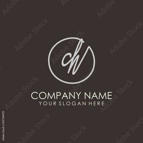 CH initials signature logo. Handwritten vector logo template connected to a circle. Hand drawn Calligraphy lettering Vector illustration.