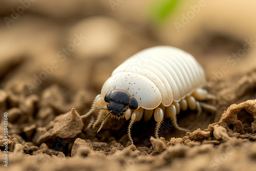 Chafer grub in white on a backdrop of earth. the May beetle's larva. Pest in agriculture. Generative AI