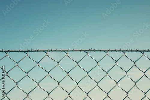 Chain link fence against clear blue sky perspective concept