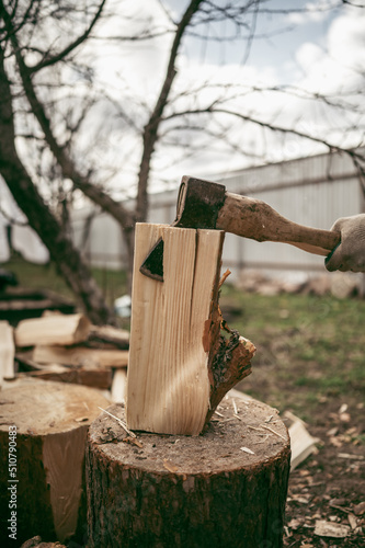 Chainsaw in action cutting wood. Man cutting wood with saw