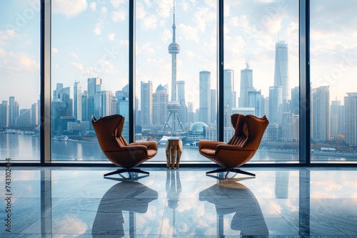 Chairs by Window in City Apartment. Generative AI