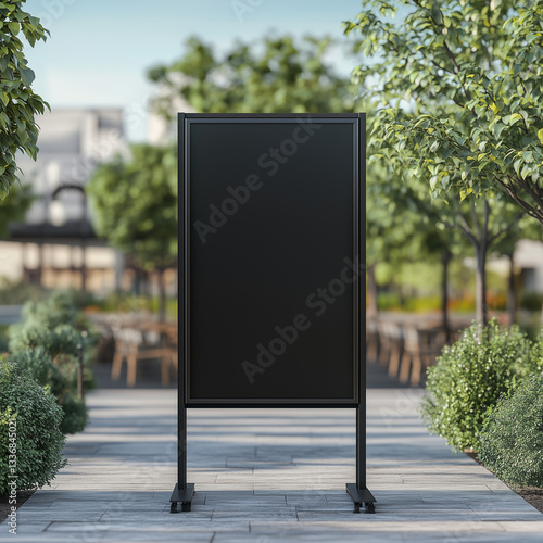 Chalk board street stand mockup isolated 3d rendering. Clear outdoor signage with blackboard mockup