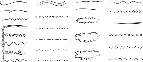 Chalk scribble doodle arrow, line elements set. Crayon arrow, underline, handwritten mark check. Rough hand drawn marker sketch with brush grunge texture. Hand drawn doodle brush lines image.