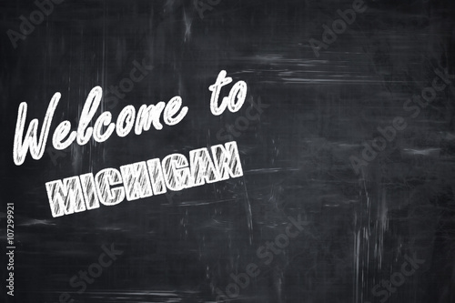 Chalkboard background with chalk letters: Welcome to michigan