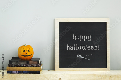 chalkboard frame with BOOKS and pumpkin HAPPY HALLOWEEN