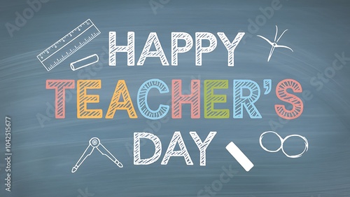 Chalkboard Illustration of "Happy Teacher's Day" with School Supplies