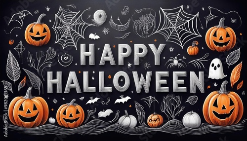 Chalkboard Trick or Treat Style. Happy Halloween. in chalkboard-style typography. halloween party poster. halloween background with halloween. halloween party invitation. wallpaper halloween