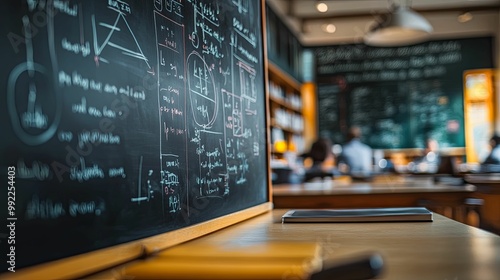 Chalkboard with Handwritten Equations in a Classroom Setting
