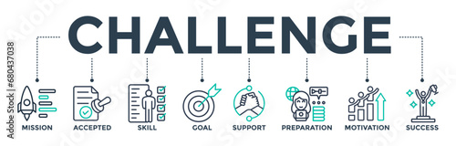 Challenge banner web icon vector illustration concept with icon of mission, accepted, skill, goal, support, preparation, motivation, and success