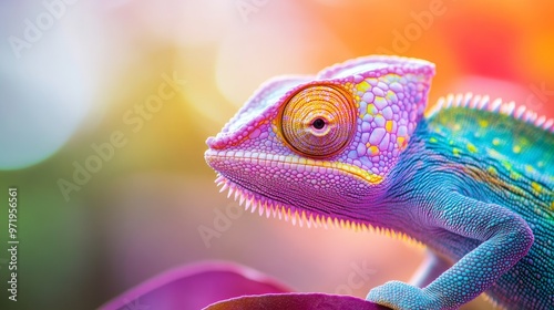 Chameleon / lizard - Photo of a beautiful Chameleon / Colorfull / Copy Space / Blank Text. Macro photography display.