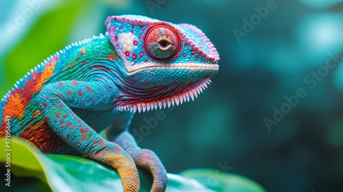 Chameleon / lizard - Photo of a beautiful Chameleon / Colorfull / Copy Space / Blank Text. Macro photography display.