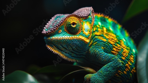 Chameleon displaying vibrant colors tropical rainforest wildlife photography close-up nature's adaptation