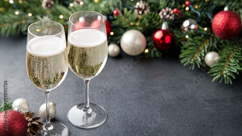 champagne and decorations, two glasses with