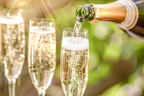 Champagne Sparkling wine Prosecco is poured into Glasses afterward and toasted Digital Art Wallpaper Background Backdrop Brainstorming Cover Card