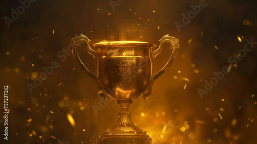 Champion golden trophy isolated on black background. Concept of success and achievement.