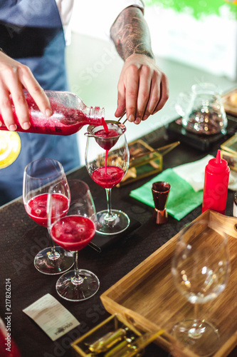 championship among coffee houses, members of teams show barista's skill, prepare drinks, teamwork
