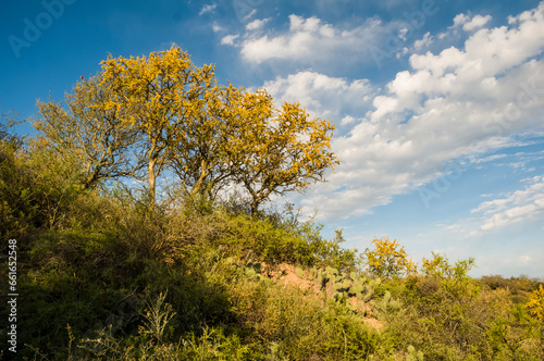 Chañar tree in Calden forest, bloomed in spring,La Pampa,Argentina
