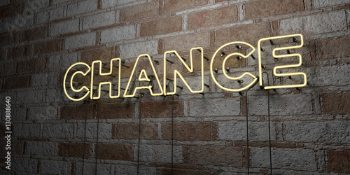 CHANCE - Glowing Neon Sign on stonework wall - 3D rendered royalty free stock illustration. Can be used for online banner ads and direct mailers..