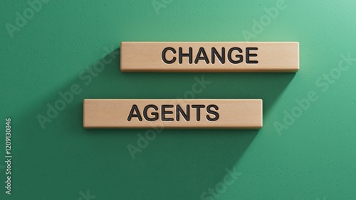 Change agents symbol. Concept word Change agents on wooden blocks.Business and Change agents concept. Copy space.3D rendering on green background.