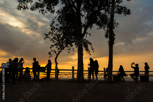 Chanthaburi: February 22, 2018, tourists, people, come to see nature. Evening at Noen Nangphaya Viewpoint, Sanamchai, Na Yai Am District, Thailand