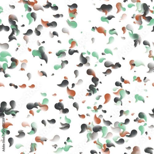 Chaotic brush strokes, drop shapes. Abstract seamless pattern. Hand drawn background. Charcoal grey, clay brown and pale teal colors