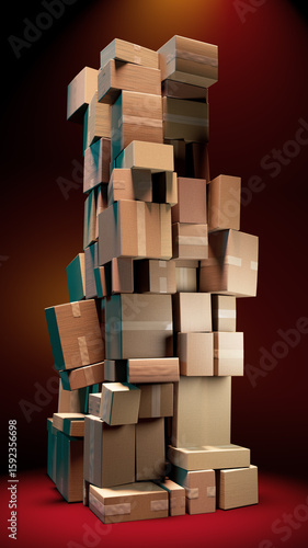 Chaotic Columns: A Mosaic of Cardboard Against a Dark Red Canvas