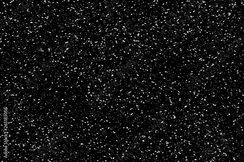Chaotic white bokeh on a black background, light spots texture, abstraction, falling snow, star sky, bright glare of light texture