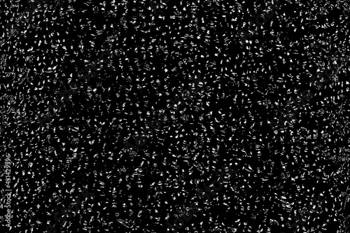 Chaotic white bokeh on a black background. light spots texture. abstraction. falling snow. starry sky. bright glare of light texture