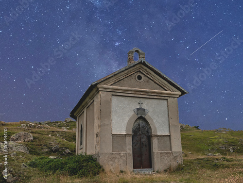 Chapelle au Col de Vars dans les Alpes du Sud avec la voie lactée et un ciel étoilée
