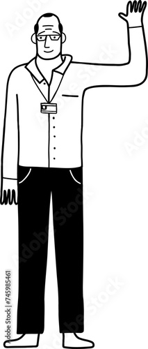 Character smiling man different age and ethnicity. Bald aged, diverse. Vector outline illustration, linear, thin line, hand drawn sketch, doodle