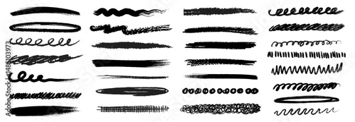 Charcoal and crayon pencil stroke vector collection. Horizontal hand-drawn lines, thin and bold textures. Grunge scribbles, chalk brush marks, pastel smears, pencil dividers. Rough textured underlines
