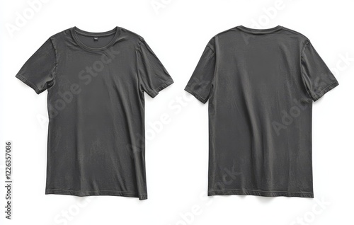 Charcoal gray t-shirt, front and back views, isolated on white.
