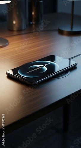 Charging Elegance - A Smartphone on a Wooden Desk.