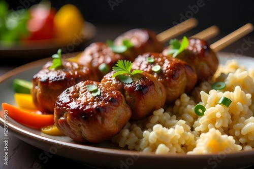 Char-Grilled Lamb Kofta with Fragrant Rice and Grilled Vegetables