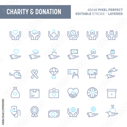 Charity & Donation Minimal Vector Icon Set (EPS 10)