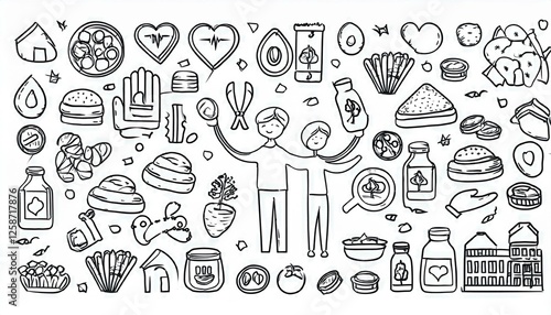 Charity hand, money, blood donation doodle line icon. Charity volunteer, support, blood donor concept icon set. Volunteer heart, donate food hand drawn doodle sketch style line. perfect any project.