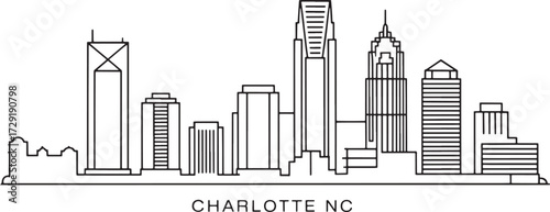 Charlotte North Carolina Skyline Silhouette Vector Illustration. Cityscape Outline.