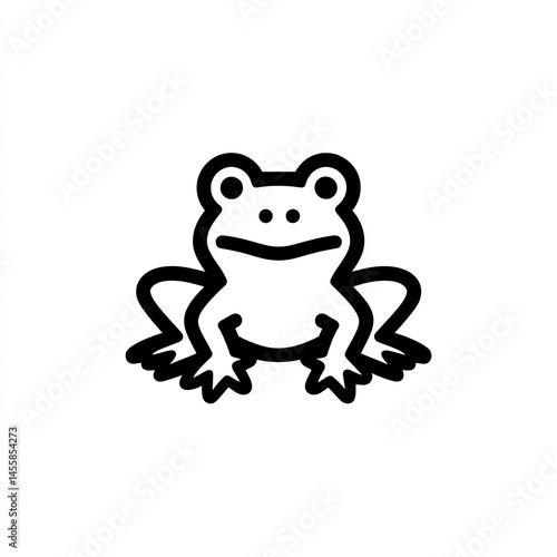 Charming Amphibian Icon A Black Line Drawing of a Frog on a White Background. Simple and Cute Design.