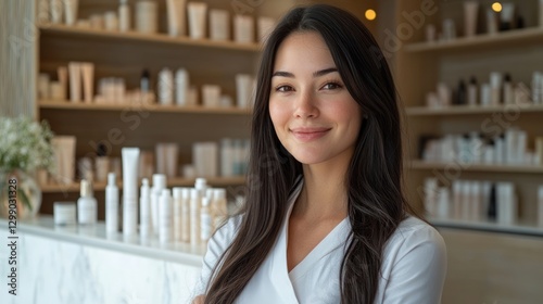 Charming Beauty Consultant in Stylish Skincare Store