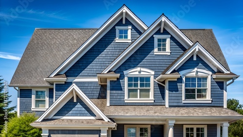 Charming Blue House Front View - Architectural Elegance in Every Detail